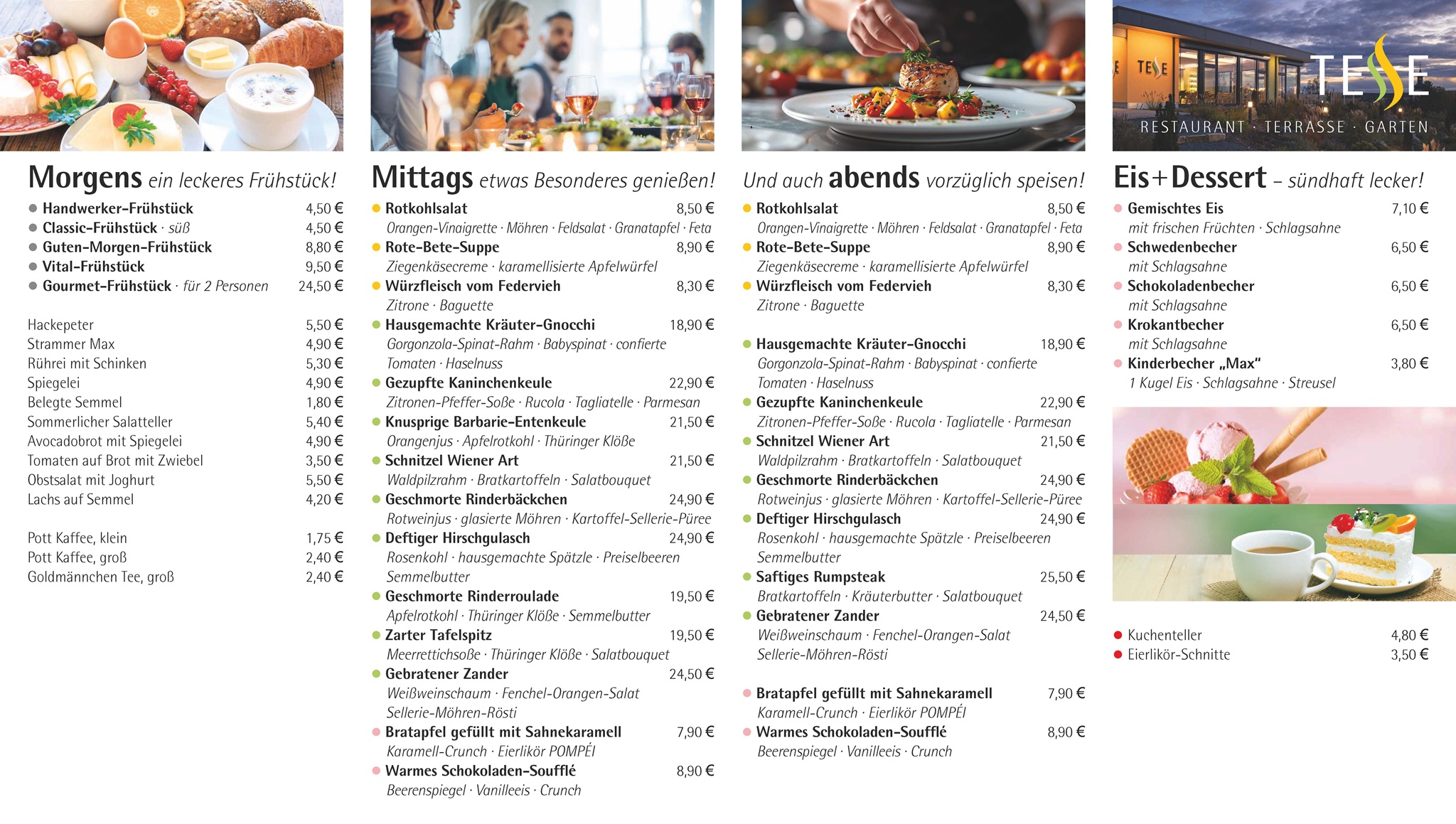 Ob Sie frühstücken, zu Mittag oder zu Abend essen wollen – oder ob Sie einfach nur Appetit auf ein leckeres Essen haben – in der TESSE finden Sie immer das richtige.